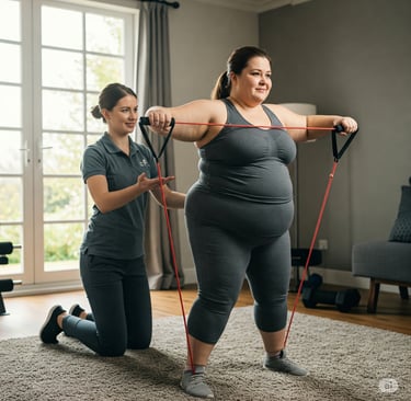 Recondicionamento Físico: Desenvolve programas de exercícios progressivos e seguros para melhorar a força muscular, a flexibilidade, a resistência e a capacidade cardiorrespiratória. Isso é fundamental para a perda de peso sustentável e para que o paciente retome suas atividades diárias.